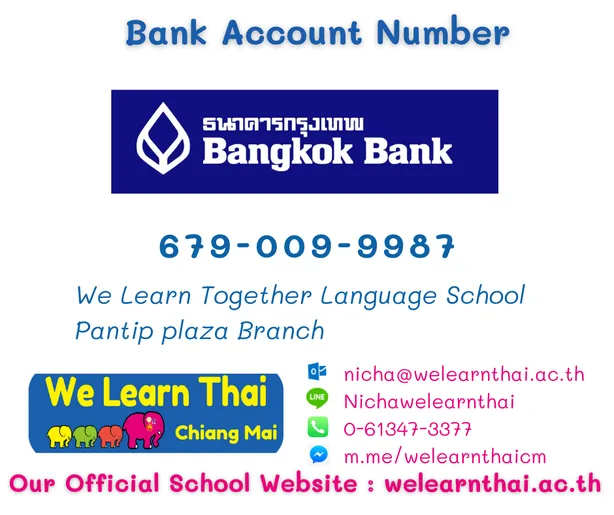 • Please note: We Learn Thai Chiang Mai will process your application once the payment has been received and all documentation has been submitted.